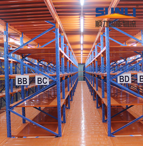 通常使用中型层板式货架或重型横梁式货架做主体,配合叉车或液压升降平台上下楼上货物。多层搁楼式货架能够简单高效的利用仓库空间。
